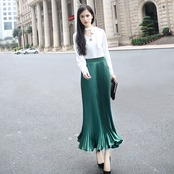 オシャレ シック 合わせやすい エレガント ウエストゴム プリーツ☆A1217