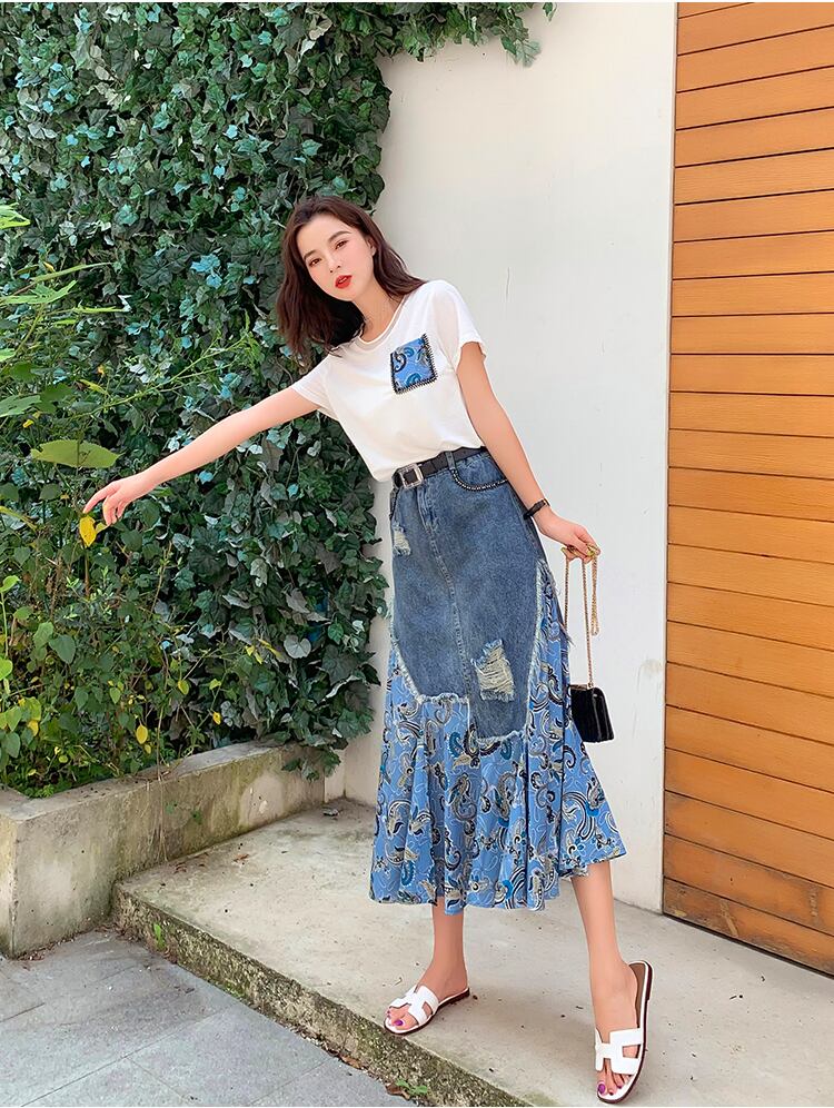 ミモレ丈 スカート デニムスカート 韓国 ☆A1169