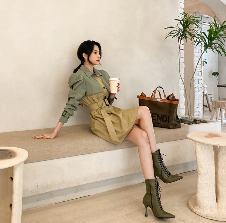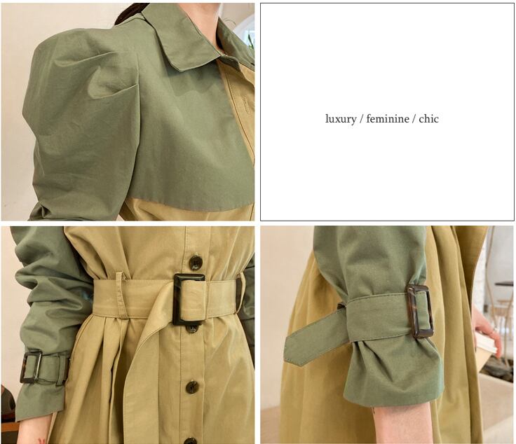 バイカラー トレンチコート風 ワンピース ウエストベルト付き a879