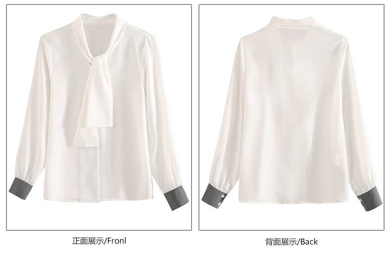 Vネック ボウタイ シフォンブラウス 長袖シャツ 3カラー a883