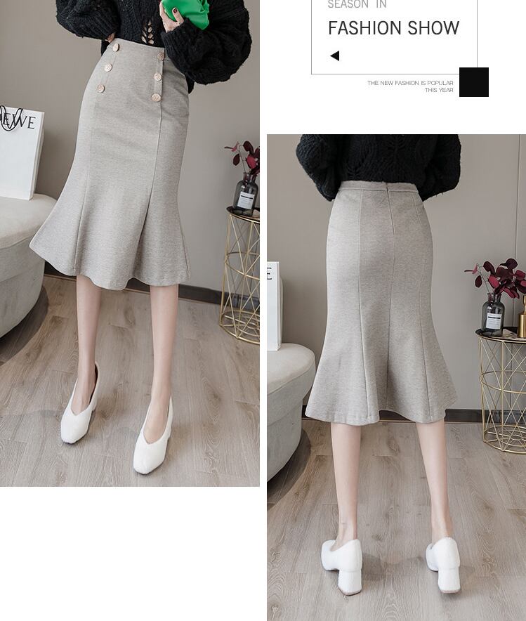 Aラインフィッシュテールスカート ウール ハイウエスト ミドル丈 マーメイド a1065