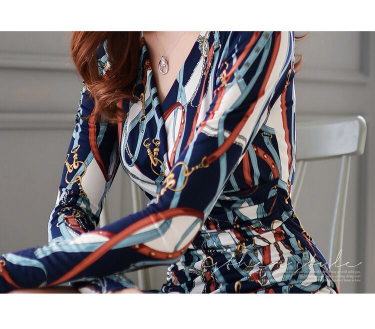 スカーフ柄ワンピース 長袖ワンピース ワンピース ドレス フォーマルドレス Vネック お仕事コーデ レディース 春 夏 秋 A1265