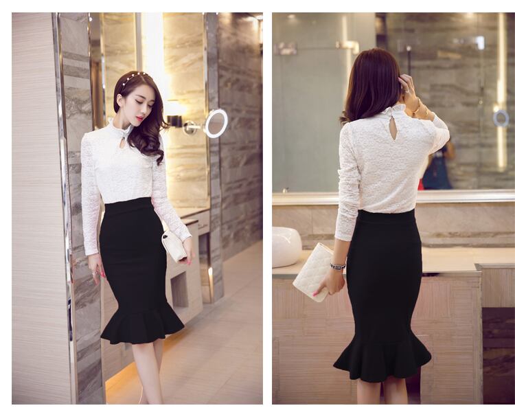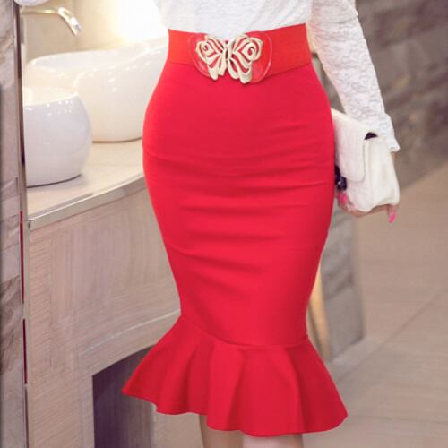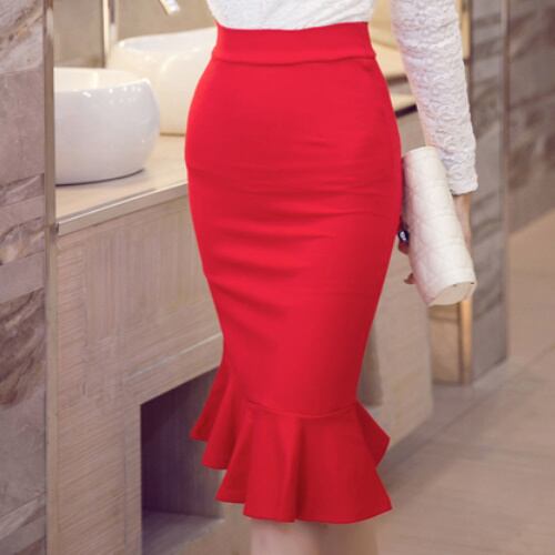 フィッシュテールスカート フリル タイト膝丈スカート マーメイド A1270