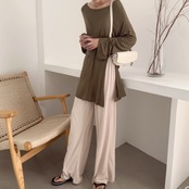 【セットアップ】 バックオープンシャン+ワイドレッグパンツ ルーズ とろみ感 A1288