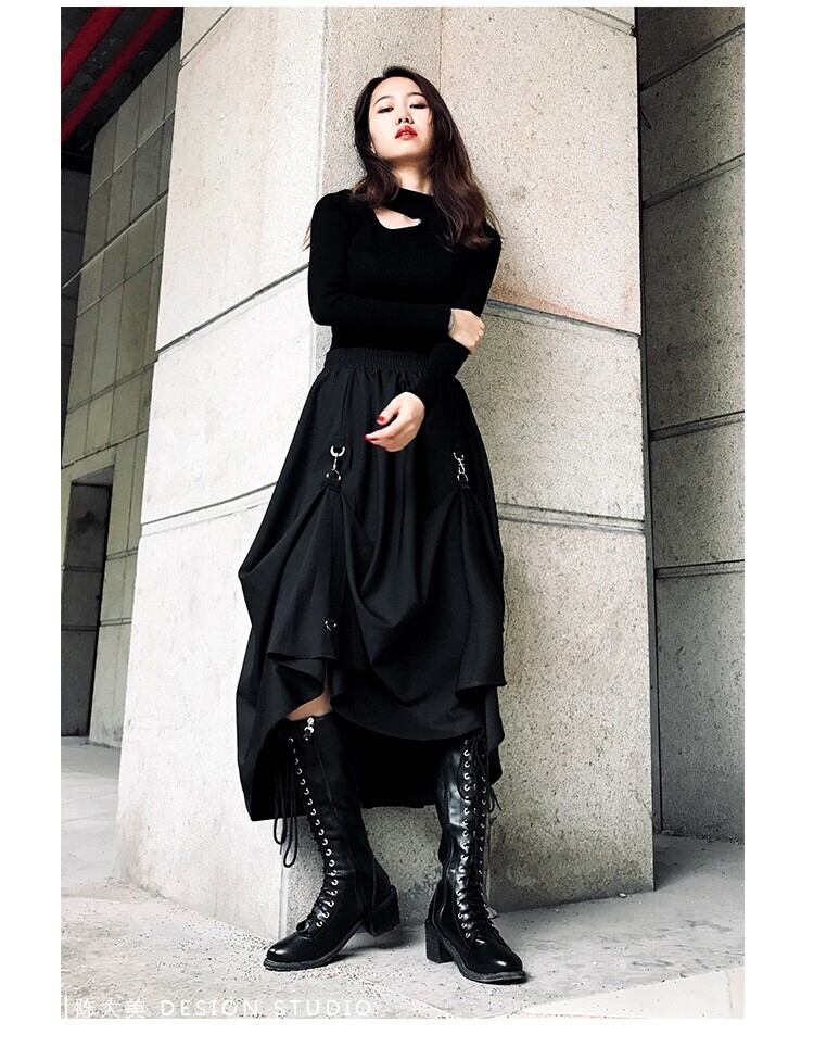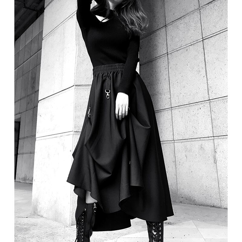 アシンメトリー ゴシック 個性的 ブラック ウエストゴム A965