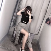 スリットスカート ウエストリボン ミモレ丈 2カラー a1316