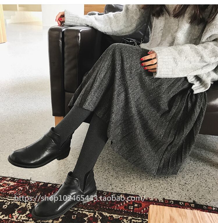 プリーツウールスカート ハイウエスト Aライン ミドル丈 ウールスカート 2カラー a1335