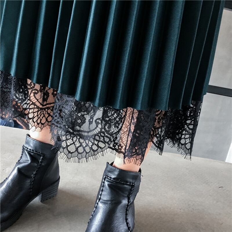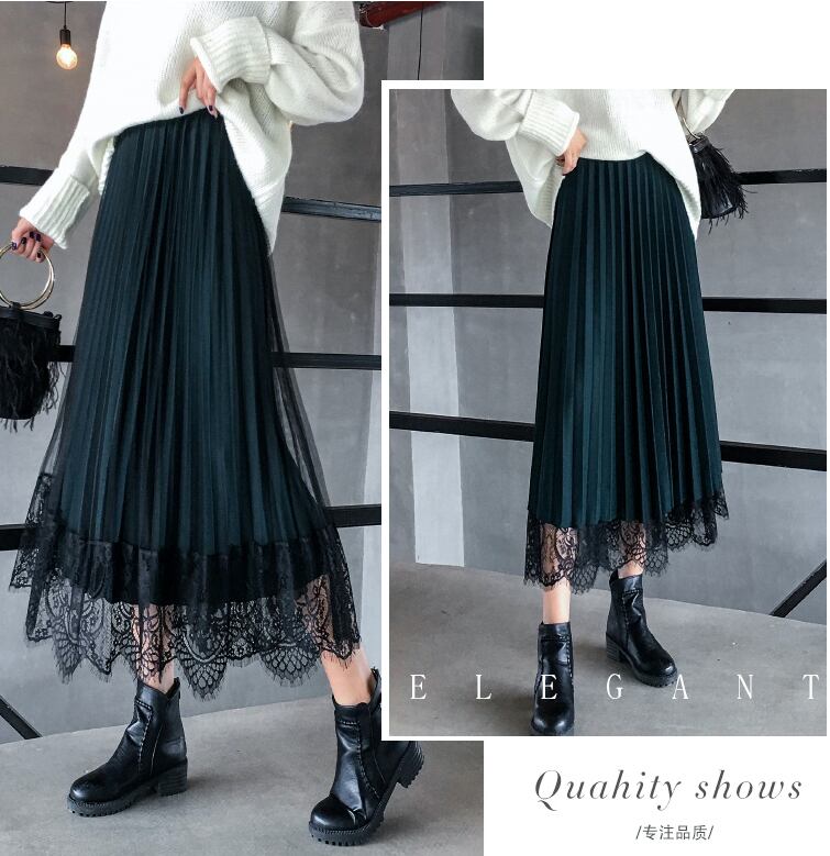 プリーツスカート レースメッシュスカート ベルベット ハイウエスト 3カラー a1339