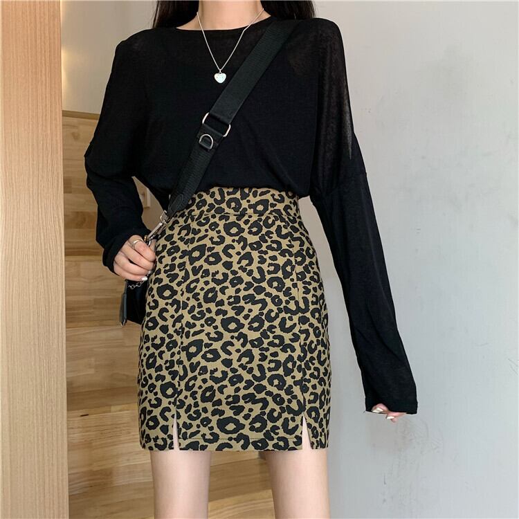 ヒョウ柄ハイウエストスカート Aラインスカート ショートスカート 2カラー a1350