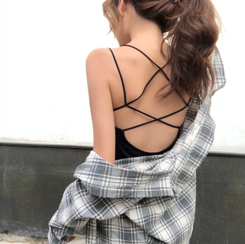 パット付き★バッククロスベルトキャミソール ホルターショートインナー a
