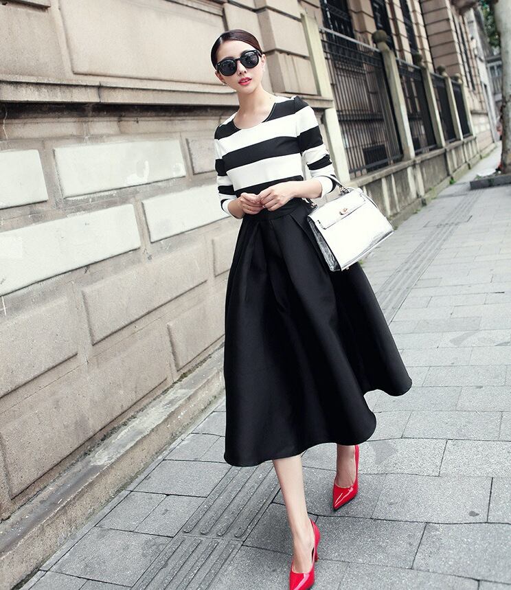 Aラインヘプバーンフレアスカート 3カラー b335
