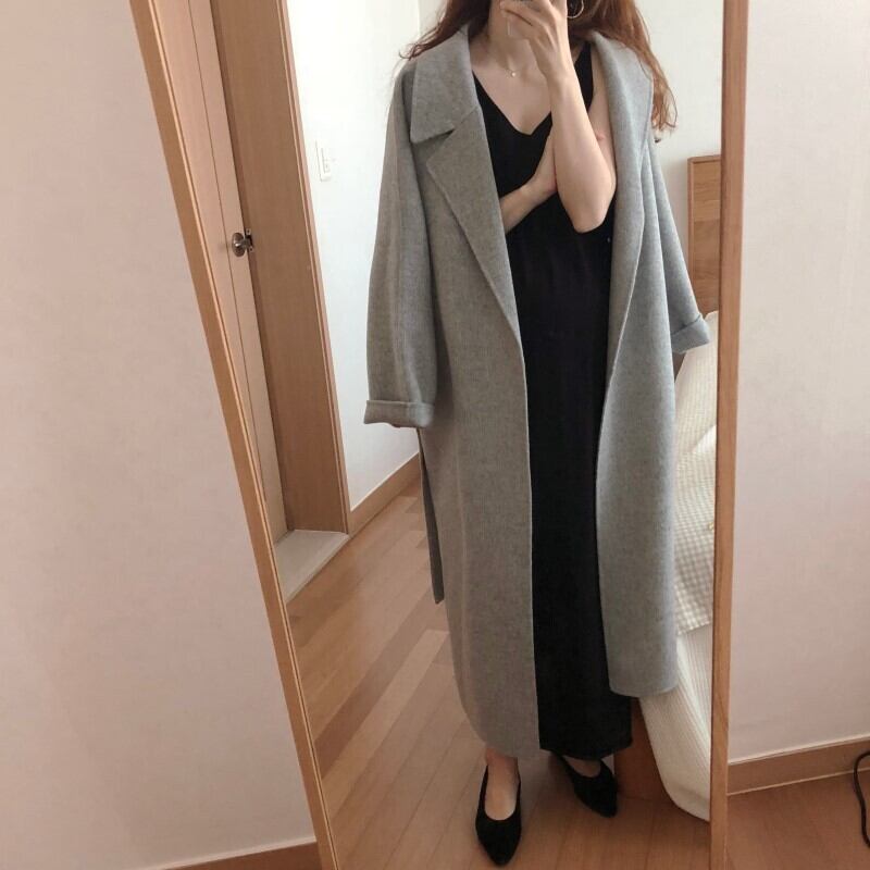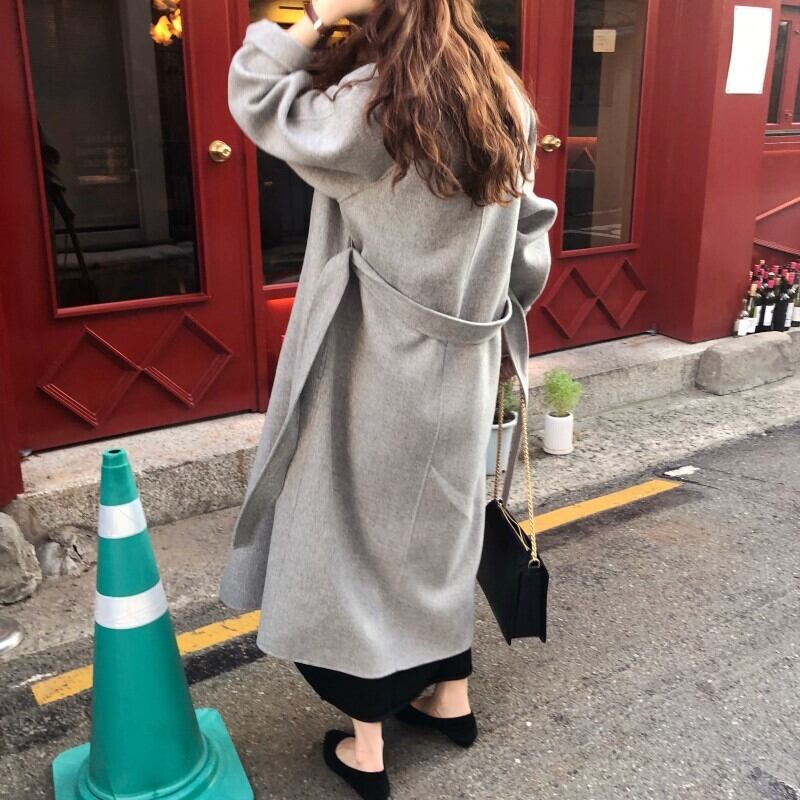 ロング丈ウールコート ウエストリボン 2カラー a1396