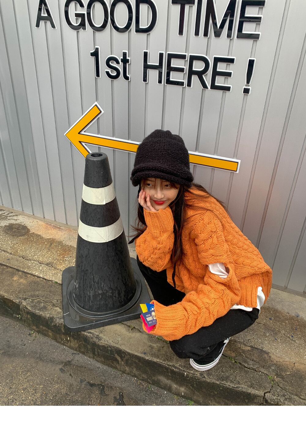 プルオーバーニットセーター スリーブダメージ ルーズ 韓国 オルチャン a1399