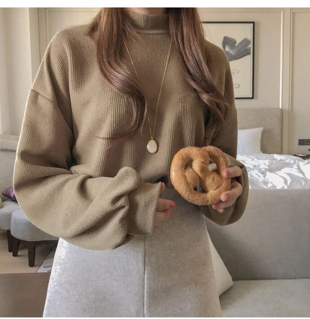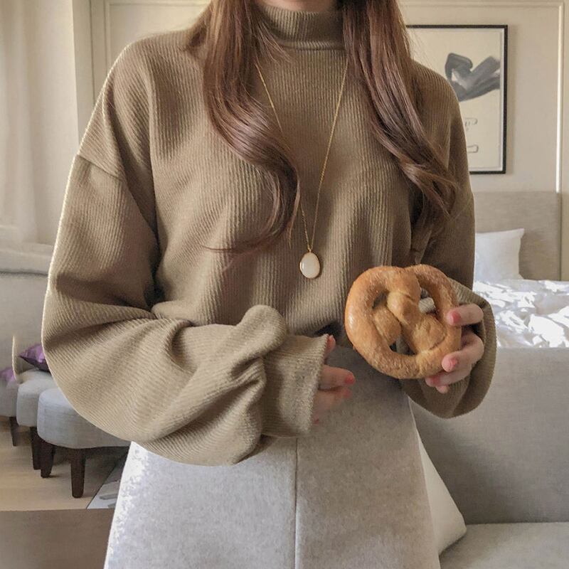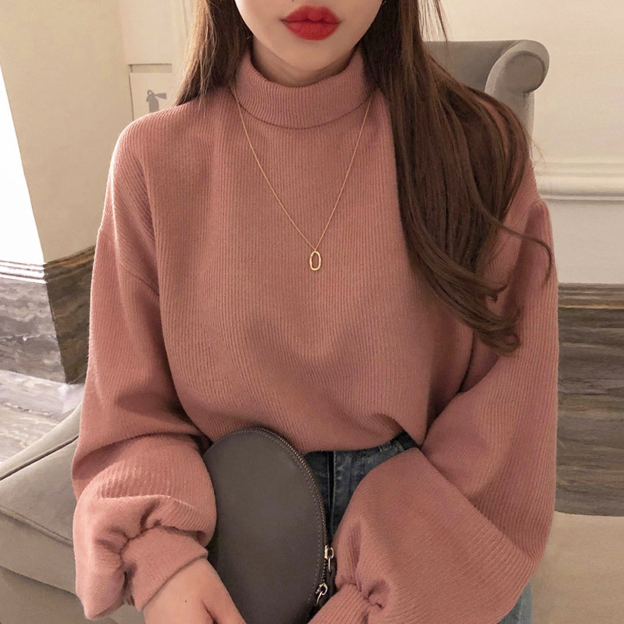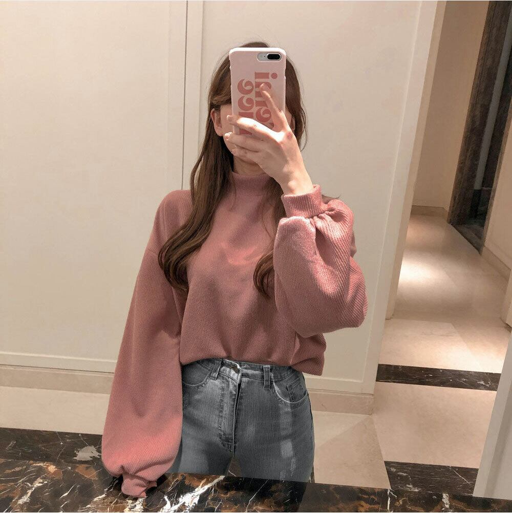 ルーズランタンスリーブセーター ハイネック 韓国 オルチャン 2カラー a1403