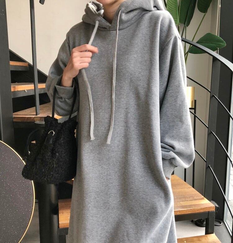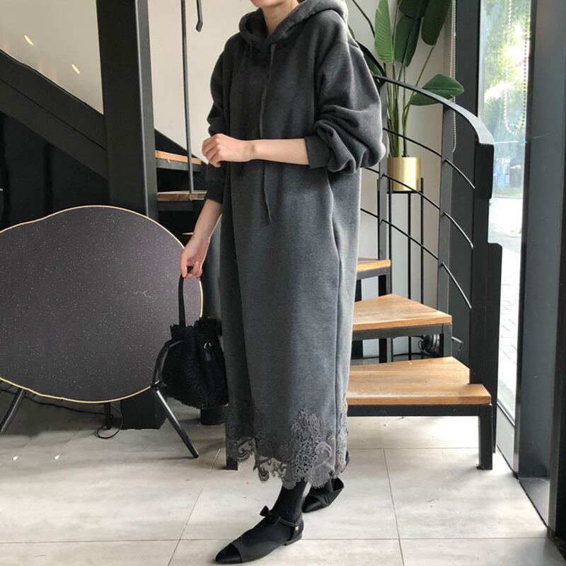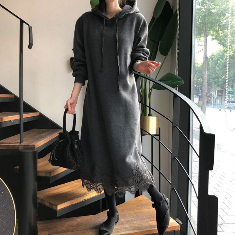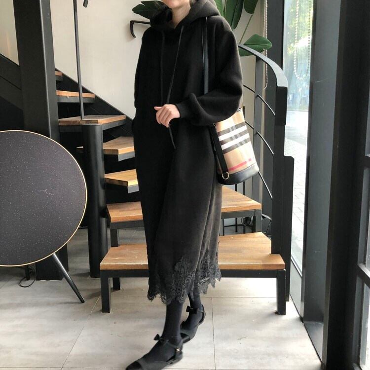 フード付きセーターワンピース レースステッチ ベルベット 韓国 オルチャン 3カラー a1417