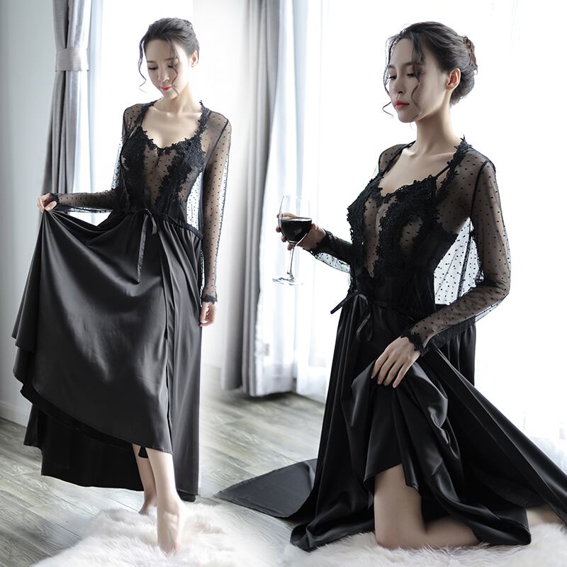 レースキャミソール+ナイトガウンの大人セクシーなランジェリーセット