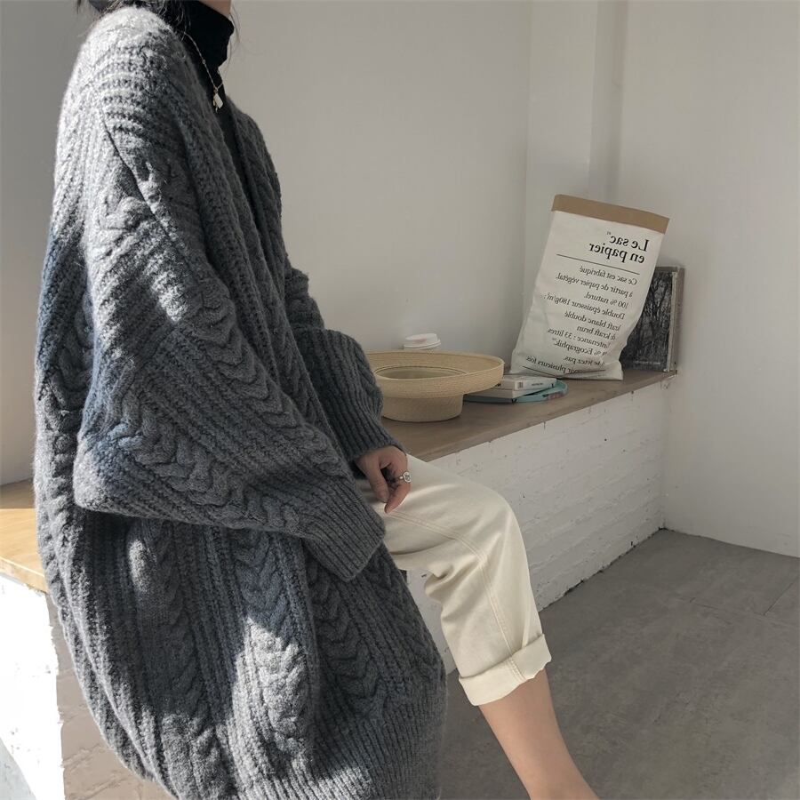 ニットカーディガン セーターコート ケーブルニット 2カラー a1433