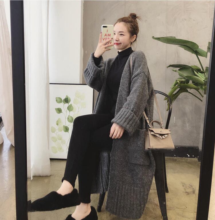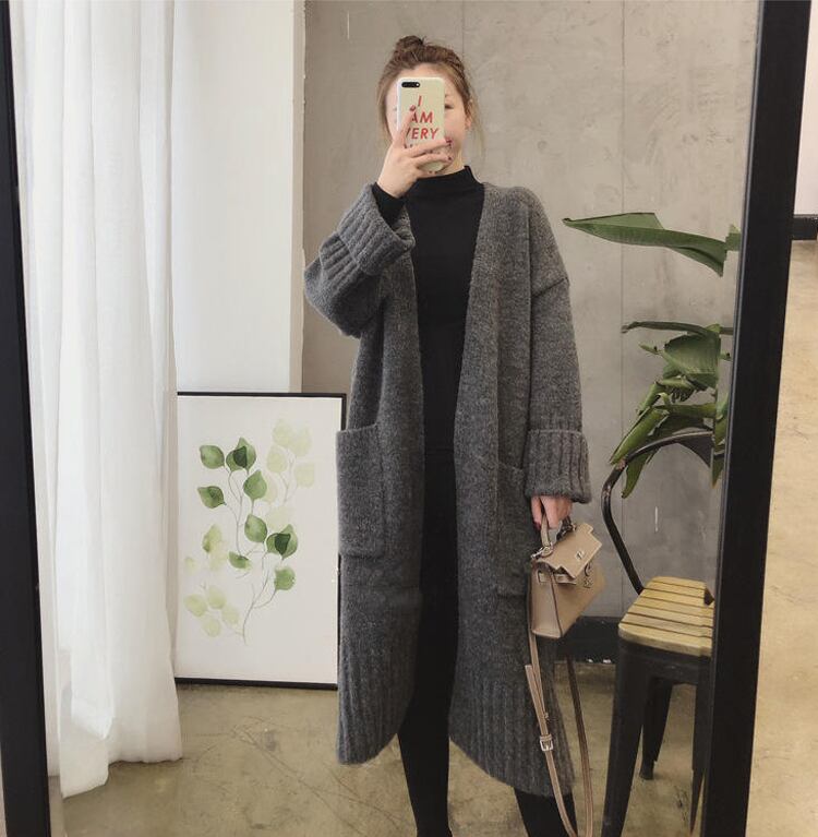 ルーズニットカーディガン ミドル丈 セータージャケット 3カラー a1434
