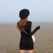 長袖ニットワンピース タイトワンピ ラウンドネック ミニ丈 韓国 オルチャン A964