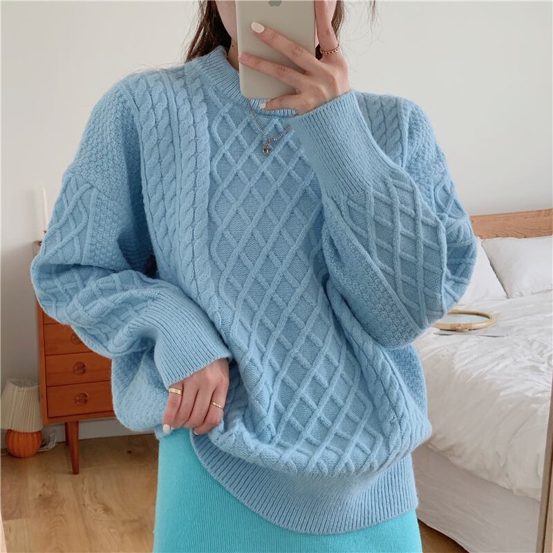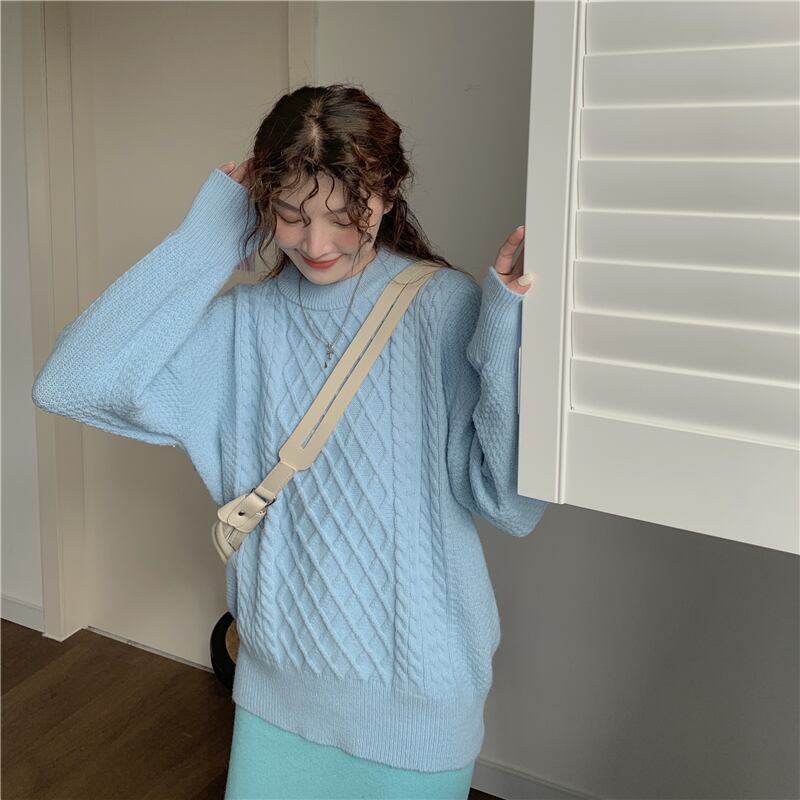 【セットアップ】ブルーツイストセーター+ニットスカート プルオーバーニットセーター長袖トップス 韓国 ルーズ オルチャン a1453