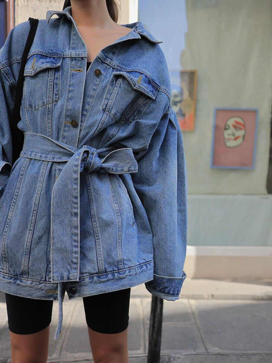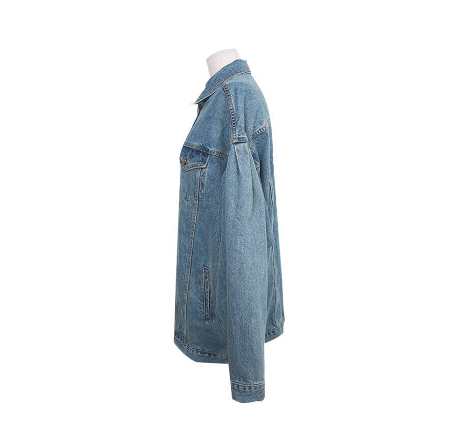 デニムジャケット ストラップウエスト ルーズ レトロ ワイルドラペル 韓国 シングルブレスト 2カラー a1485