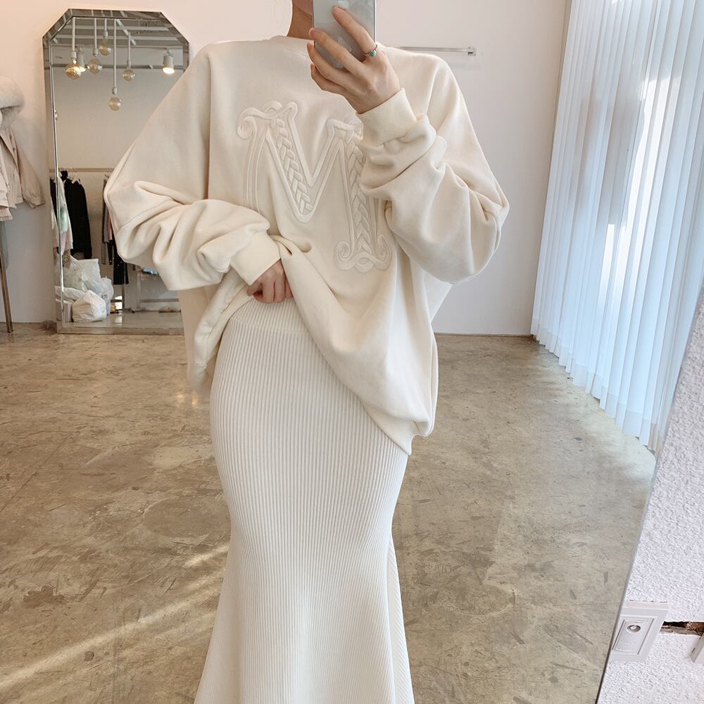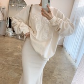 プルオーバールー長袖セーター 刺繍 ラウンドネック ニット ベルベット ルーズ ワイルドウォーム 韓国 シック 秋冬 a1488
