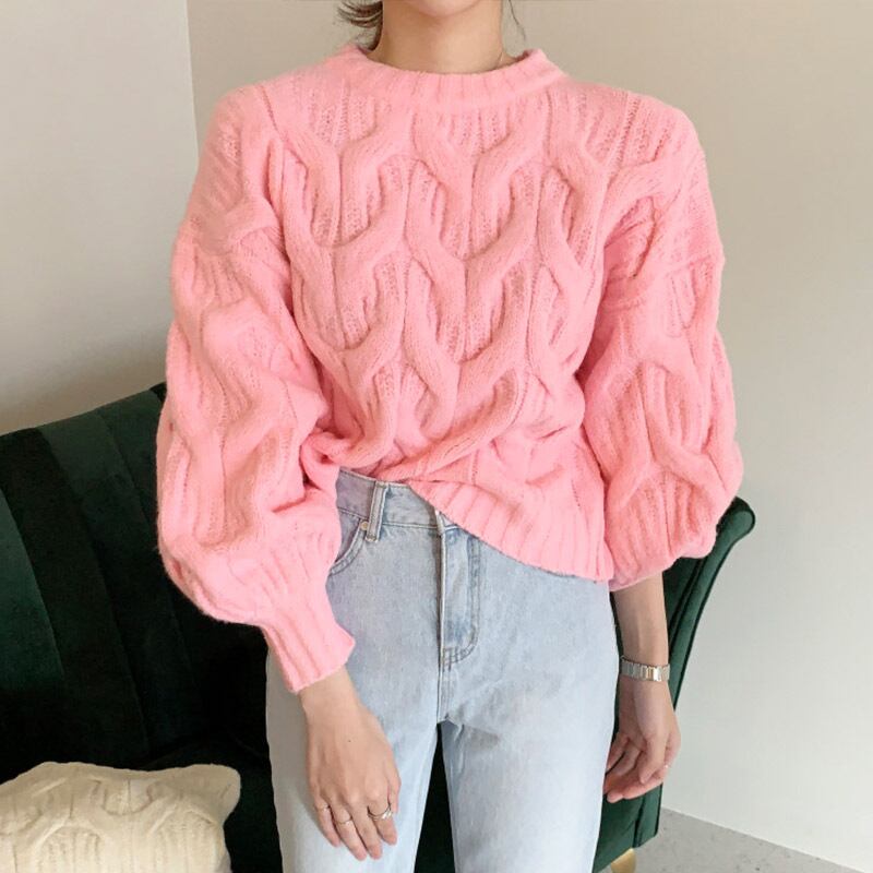 ランタンスリーブニットセーター ラウンドネック キャンディーカラー 3カラー a1397