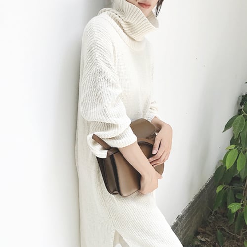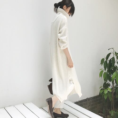 ハイネック スリット オリジナル 長袖 ニット セーター ワンピース A1789