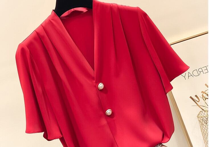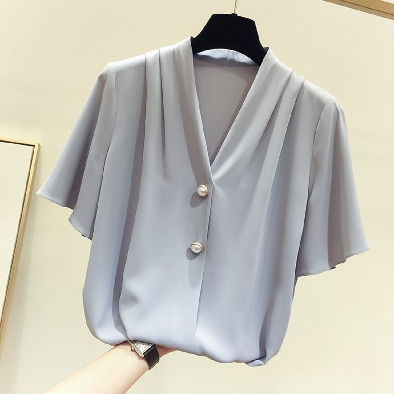 Vネックブラウス OLオススメシャツ 4色展開 A3284