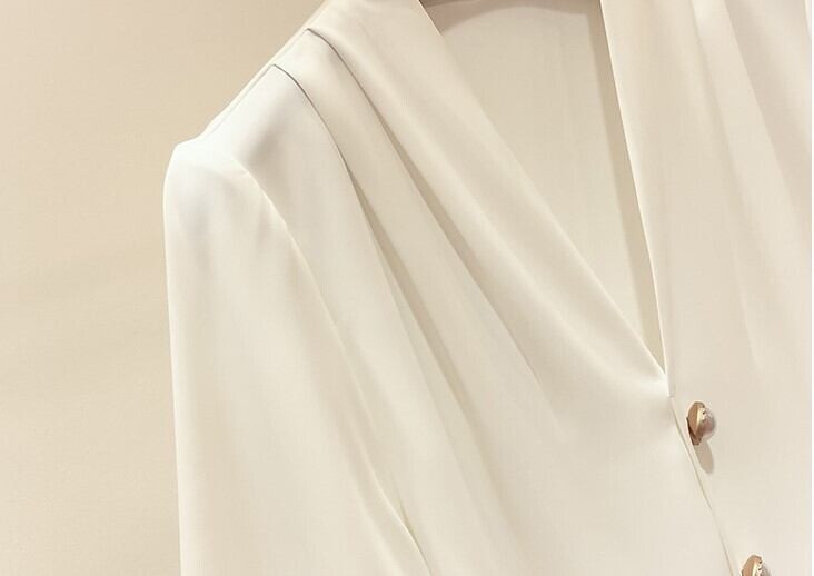 カラーレスの深めVネックがデコルテを美しく魅せるフェミニンブラウス^^