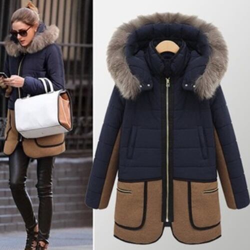 バイカラーデザインのダウンコートはキレイめスタイルにも