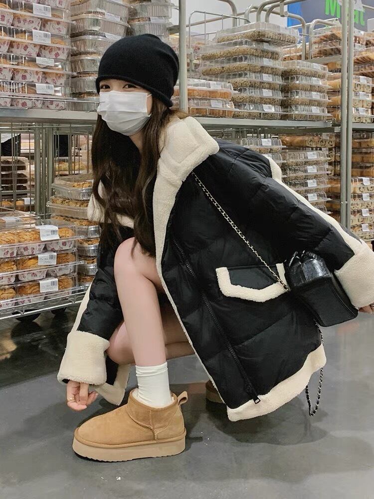 ダウンコート ダウンジャケット ラムベルベットステッチ 中綿コート ルーズ コットンコート アウター コート ジャケット 冬 a1565
