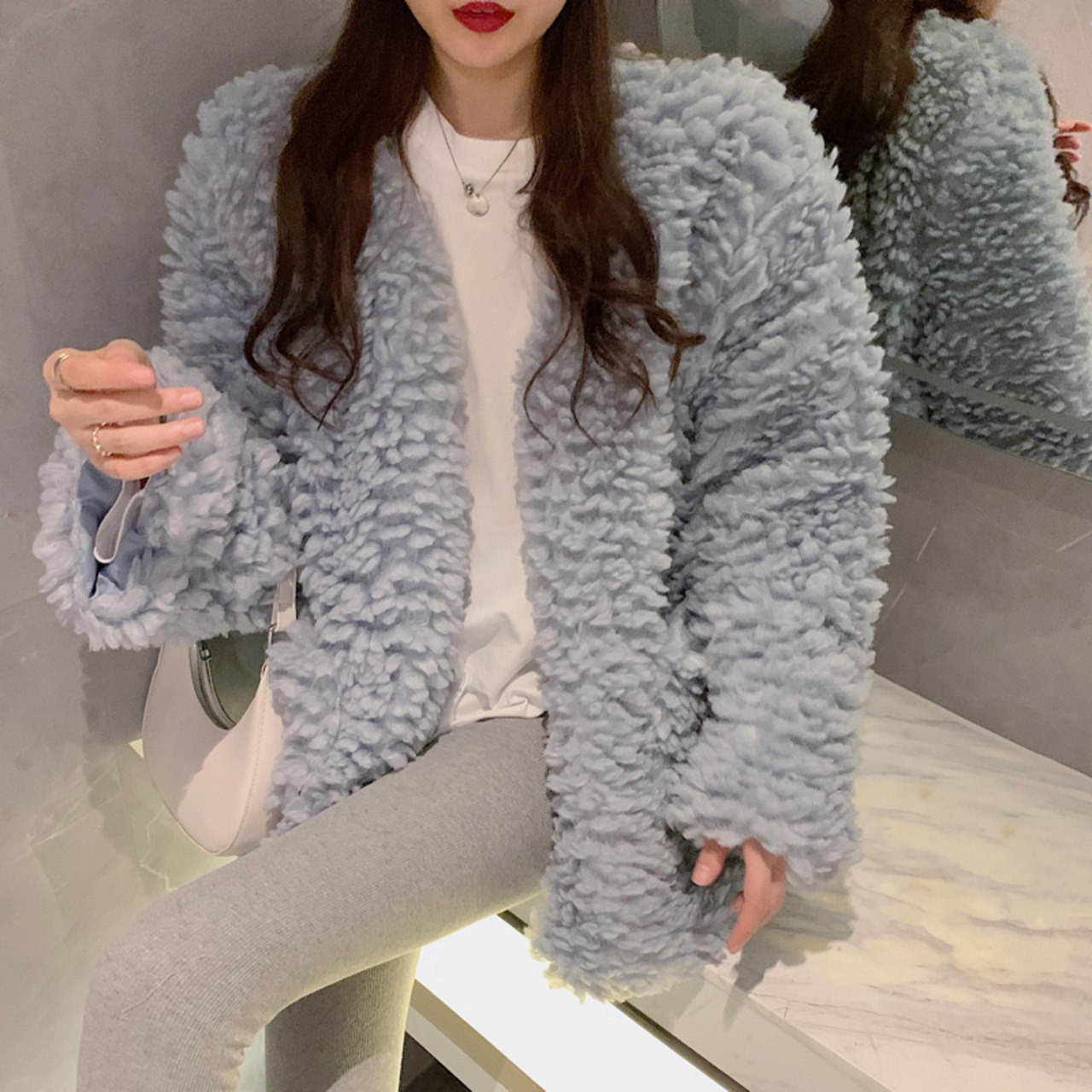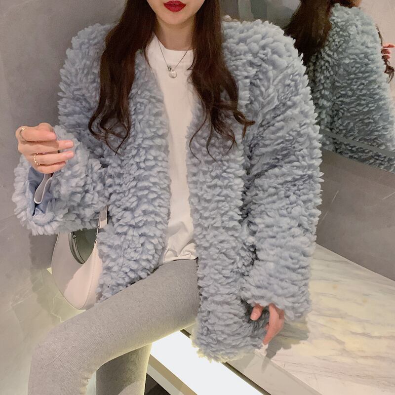 フリース カーディガン ラムウールコート ジャケットアウター 秋冬 韓国 2カラー a1575