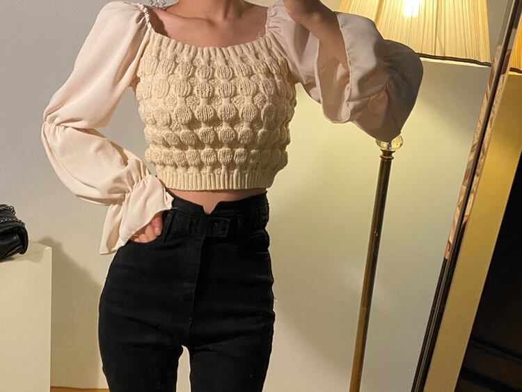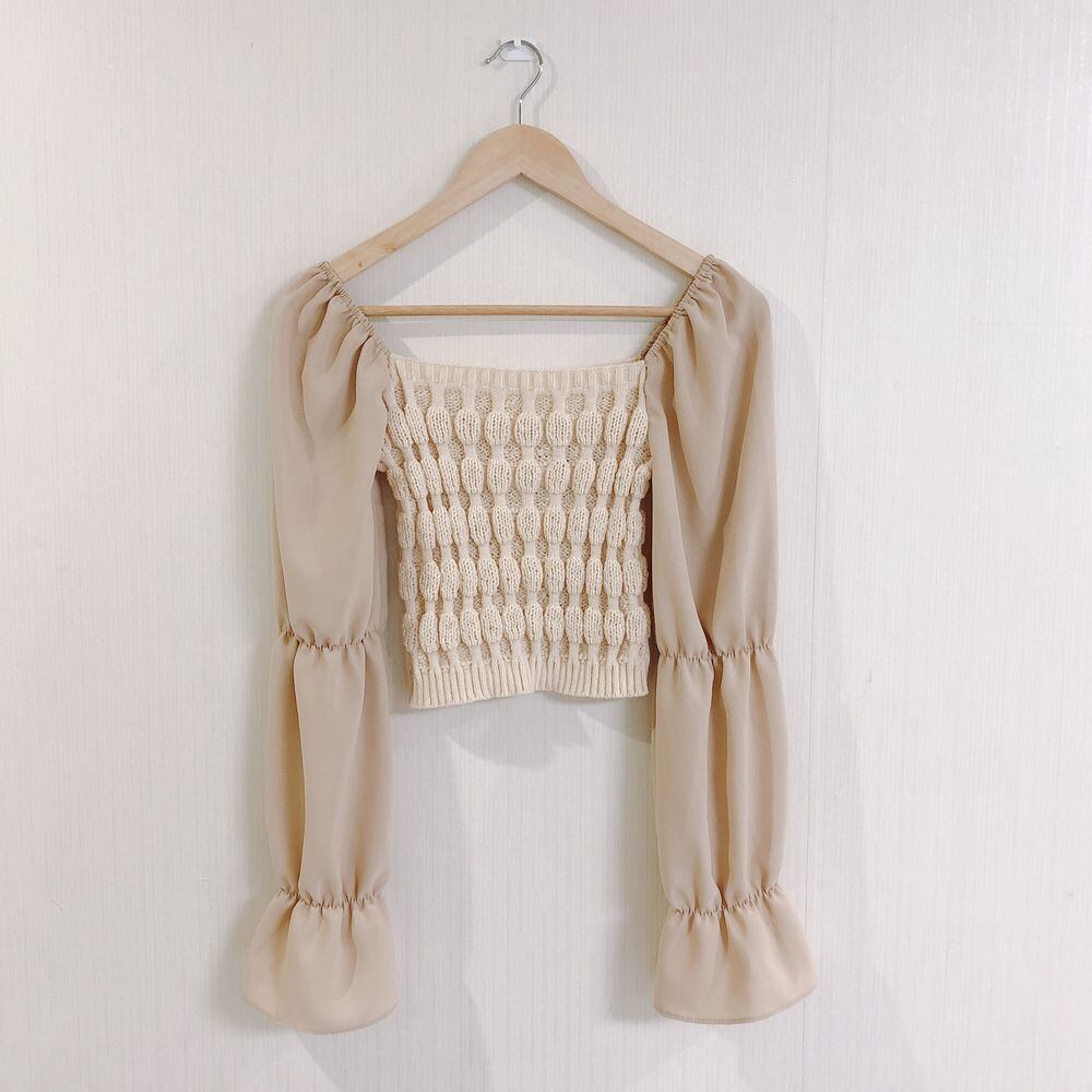 シフォン袖とセーターの組み合わせが可愛いアイテム