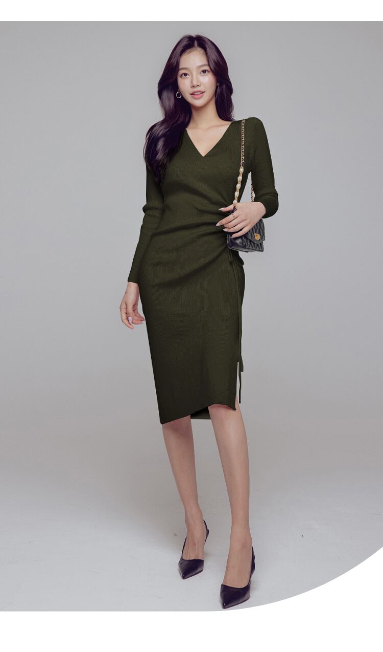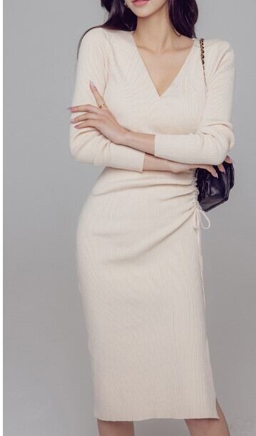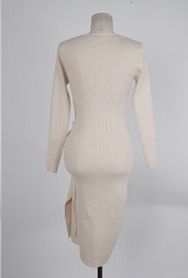 ニットドレス 長袖 Vネック ボトムオープンフォーク セータースカート A900