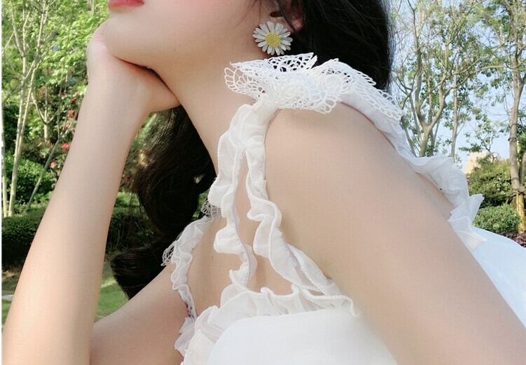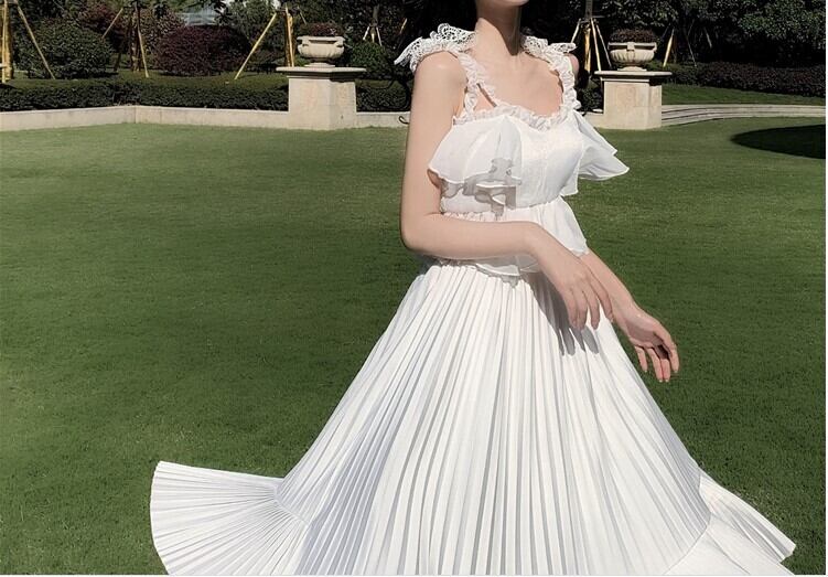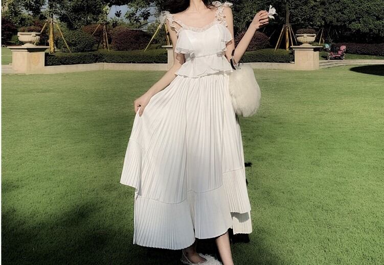 人目を惹くシフォントップ♡歩くたびに風にふんわり揺れるフリルロングスカート♡