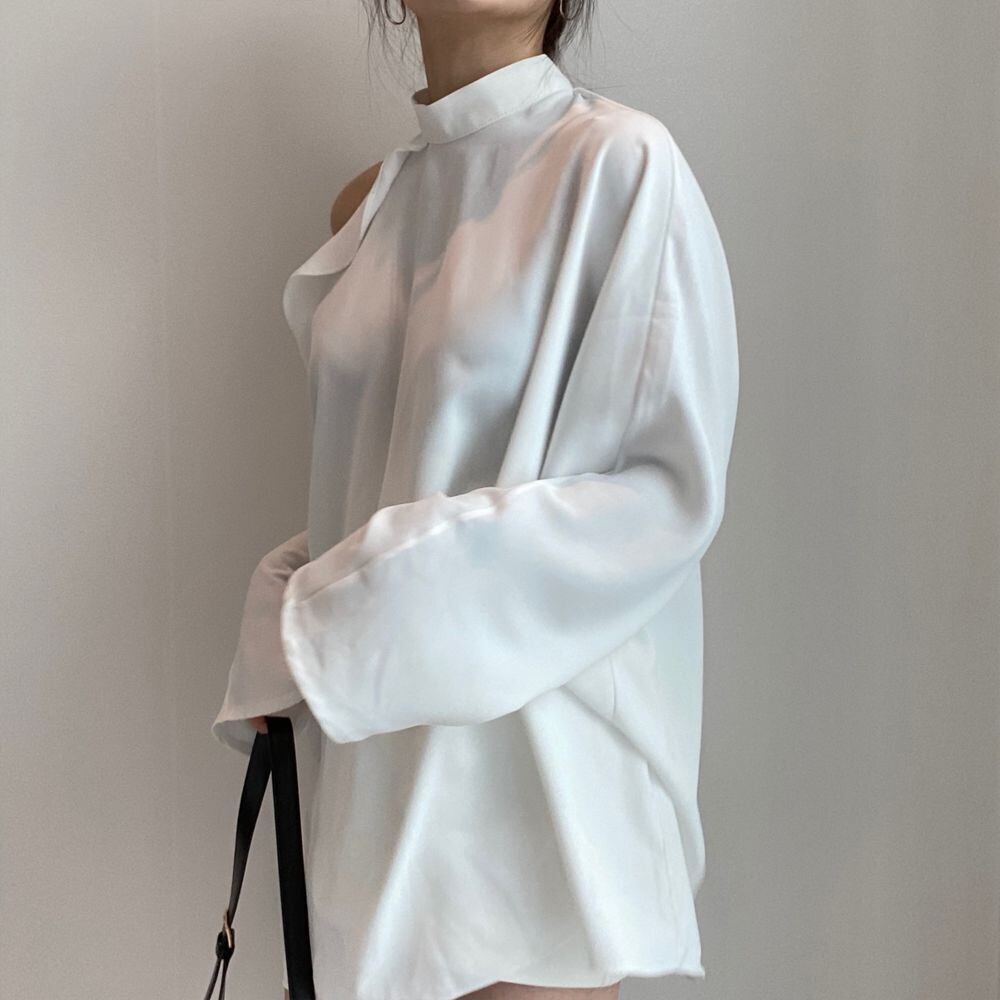 ウエストレースアップ長袖シャツ スタンドカラー ストラップレス フリル 2カラー a1606