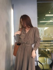 Vネック長袖ワンピース