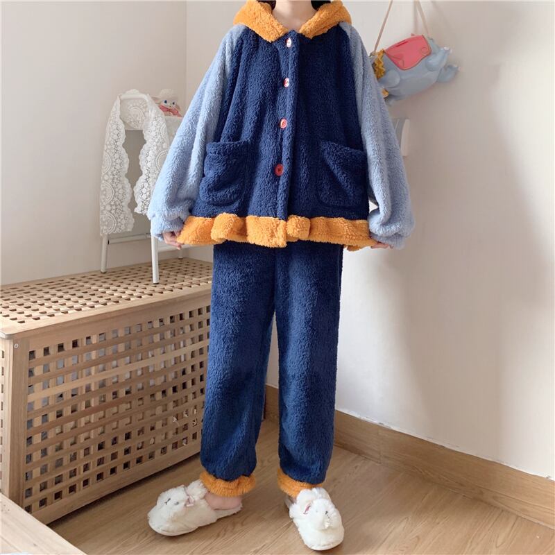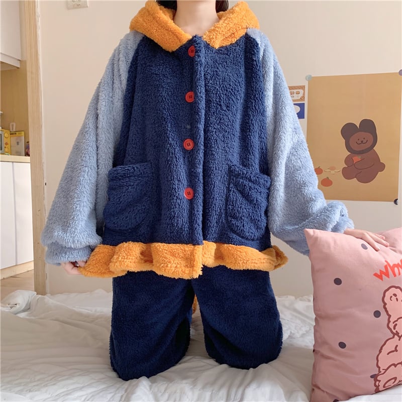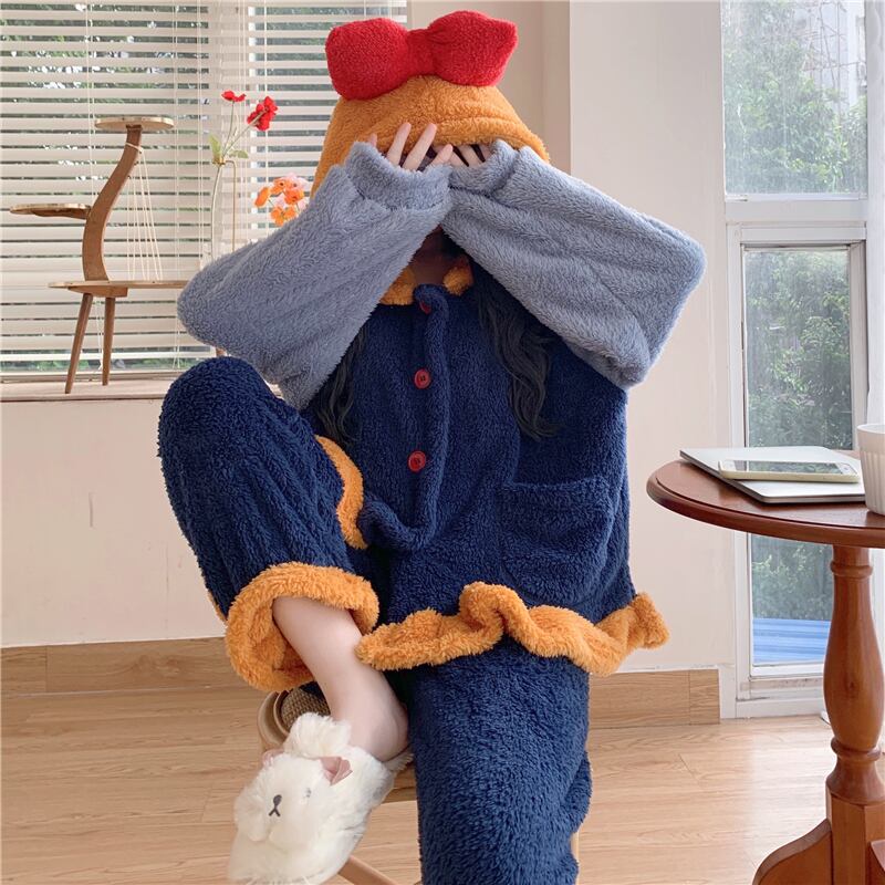 ルームウェア レディース もこもこ かわいい 秋 冬 パジャマ 寝巻き 部屋着 ホームウェア ワンピース ガウン モコモコ 前開き お揃い フード付き 暖かい リボン コスプレ a1624