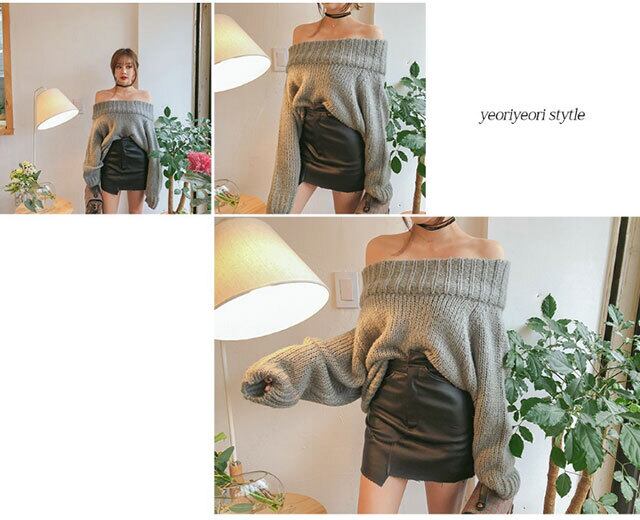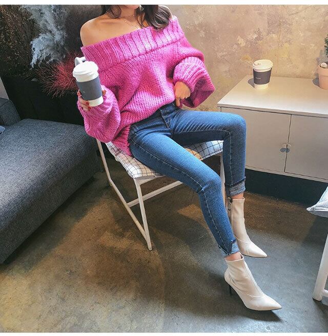 オフショルダーセーター ルーズ プルオーバー ホワイトワンネックセーター 韓国 秋冬 3カラー a1614