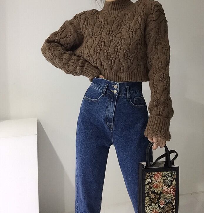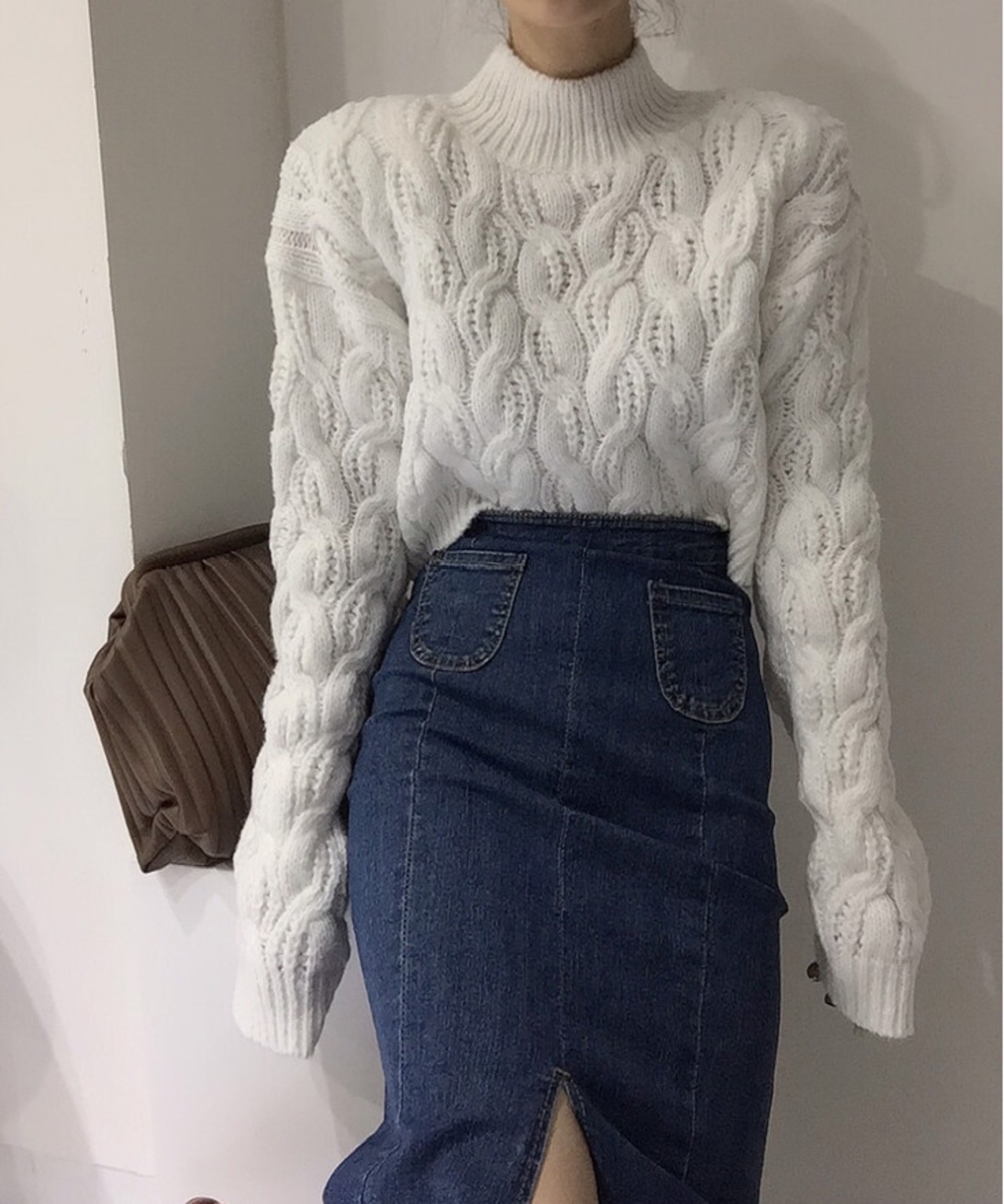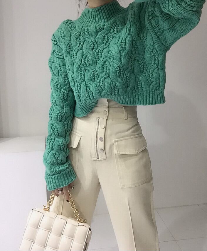 ハーフハイネック ツイストデザイン ルーズ 長袖ニットセーター プルオーバー ニット セーター 秋冬 韓国 a1617