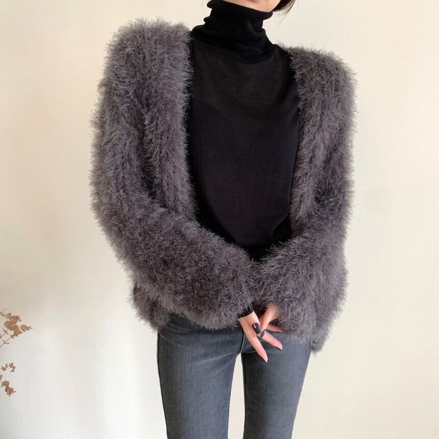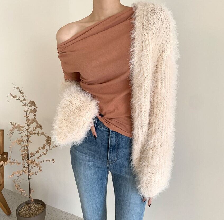 長袖カーディガン ヴィンテージルーズソリッドカラー セーターショート A917