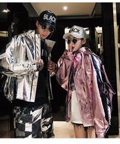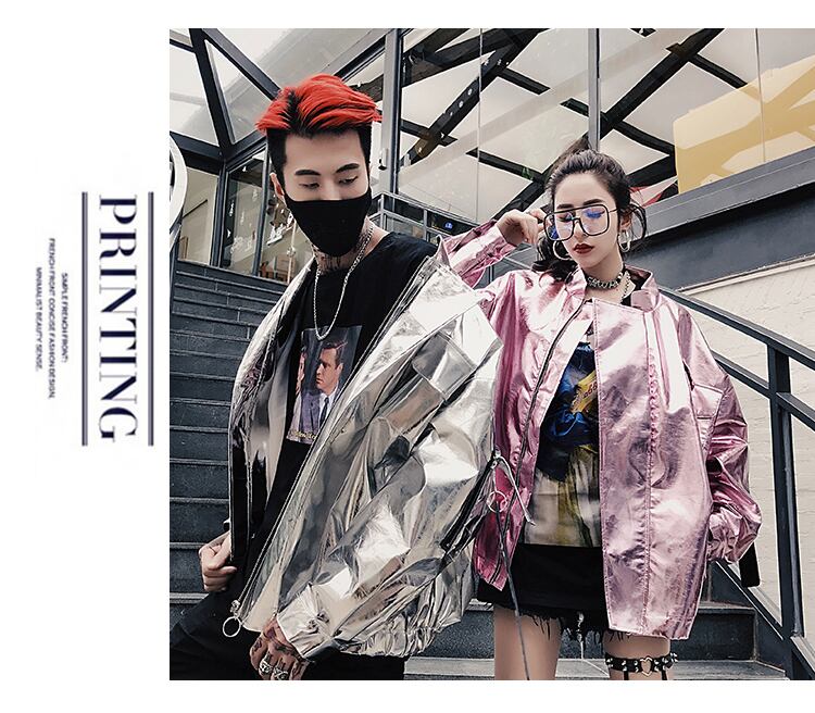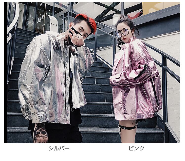 【2枚セット価格♡カップルコーデ】カップルジャケット シャイニーレザージャケット ジャンパー ブルゾン お揃い ストリート ジャケット アウター カップル シルバージャケット ピンクジャケット a1639