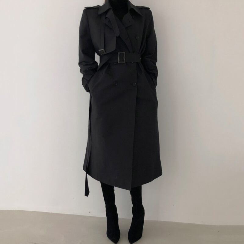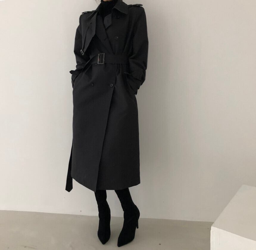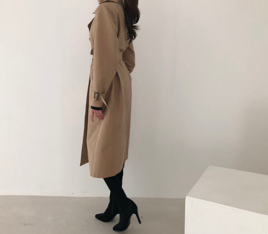 トレンチコート スタンドアップカラー シングルブレスト レースアップウエスト ミドル丈 ウィンドブレーカージャケット 韓国 シック レトロ 2カラー a1657