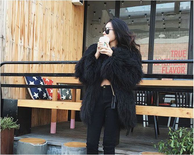 ふわふわの長い毛がおしゃれな、フェイクファーコート