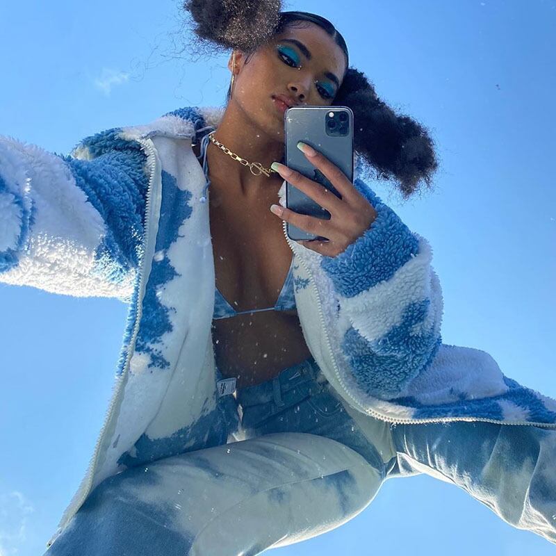 ふわふわの生地と青空白雲プリントがオシャレな1枚