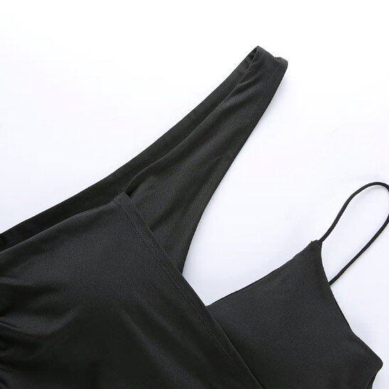 ワンショルダー キャミソール ブラック 無地 シンプル ドレープデザイン クロップドトップス カットソー アシメントリー a1694