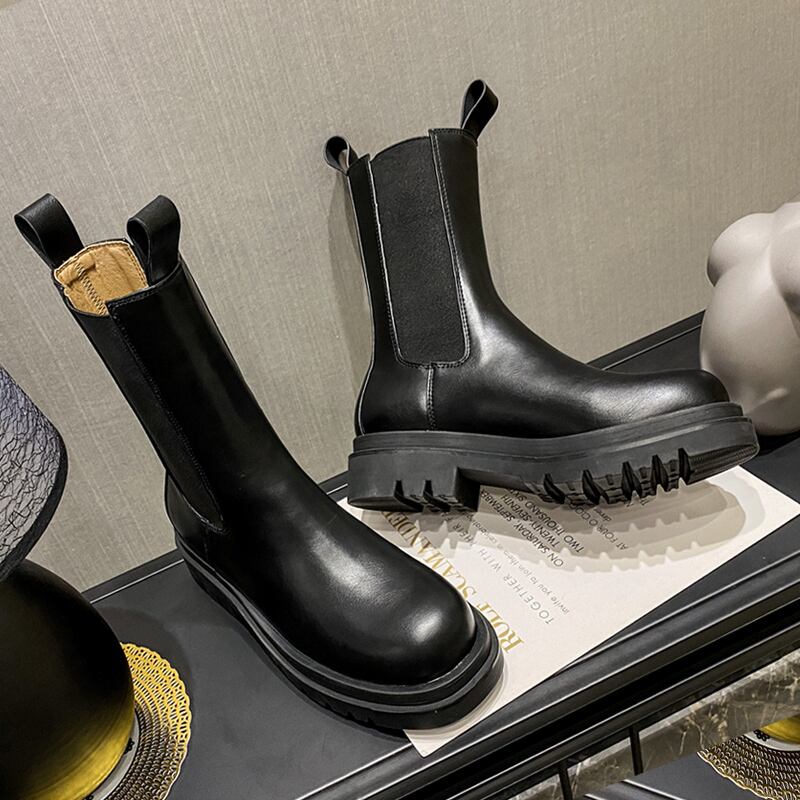 マーティンブーツ ミドルブーツ 太ヒール ショートブーツ ブラック シック ソールチェルシー a1735