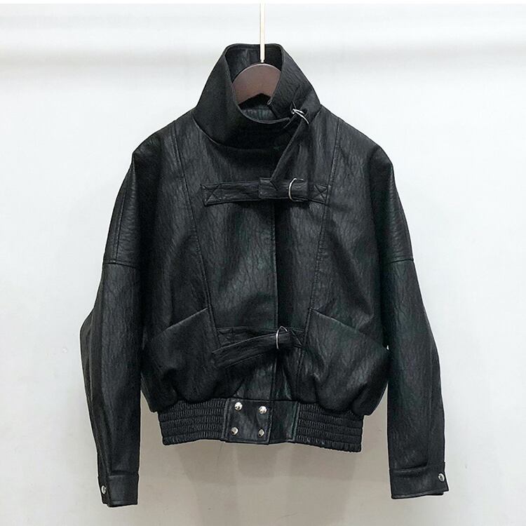 レザージャケット ルーズ BFファンカー PUレザー 革ジャン コート アウター ジャケット 2カラー a1846