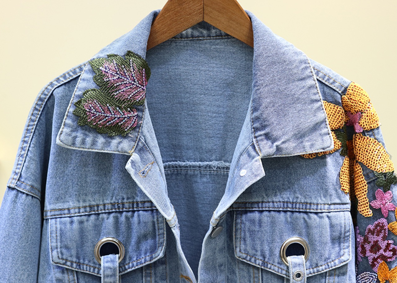 可愛い花柄刺繍デザインが可愛いデニムジャケット